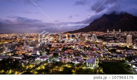 Aerial view of Cape Town city centre at sunset in Western Cape, South Africa