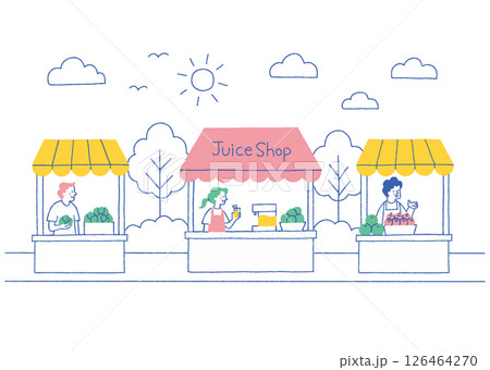 マルシェでジュースを販売する女性_色