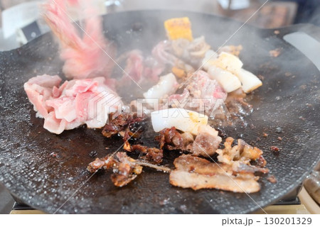 鉄板で焼く肉と海鮮のバーベキューシーン