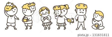 節分を楽しむ並ぶ子供たち カラー