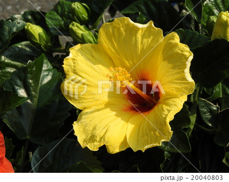ハイビスカスの花は、熱帯・亜熱帯に咲く南国の花。暑さに強く鮮やかな色が印象的である。
