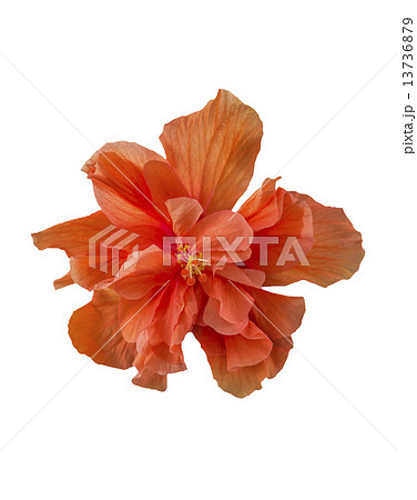 Big orange hibiscus flower on white