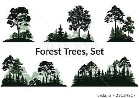 African trees black silhouettes. Isolated savannah plants. Wild forest acacia. Natural landscape elements. Australian wood set