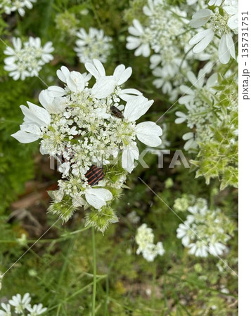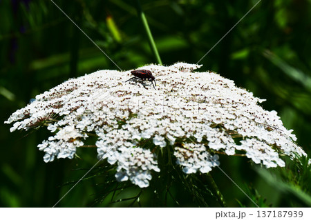 ハマボウフウの花にとまるアカスジカメムシ 鳥取県 鳥取砂丘