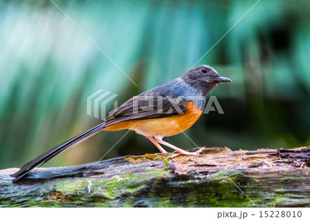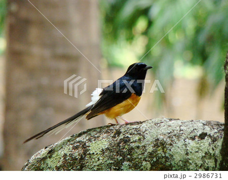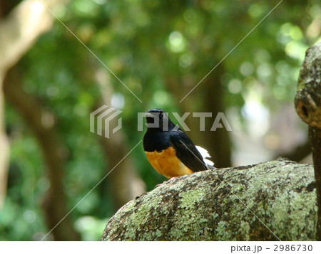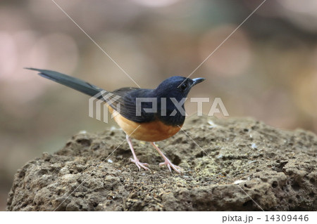 タイなど、東南アジアの熱帯雨林で見られる白黒とオレンジの羽色が美しい小鳥アカハラシキチョウ
