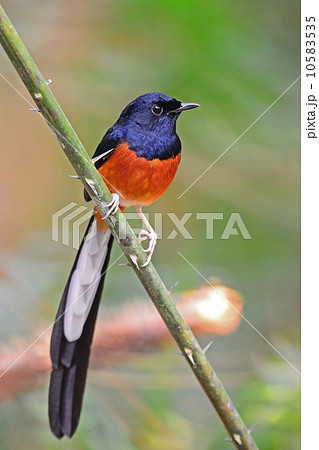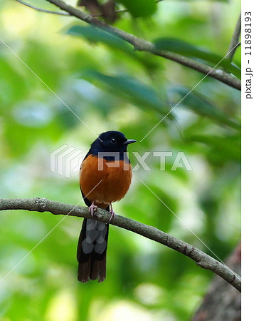 Image of White rumped Shama ( Kittacincla malabarica) on the tree branch on nature background. Bird. Animals.