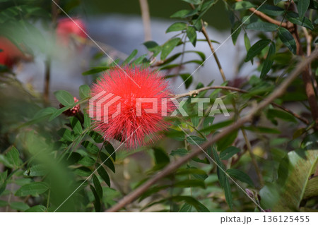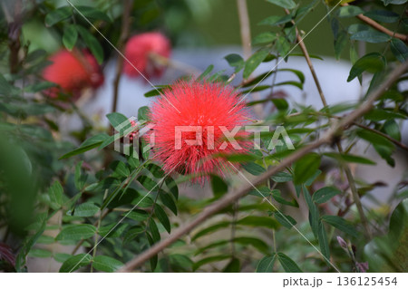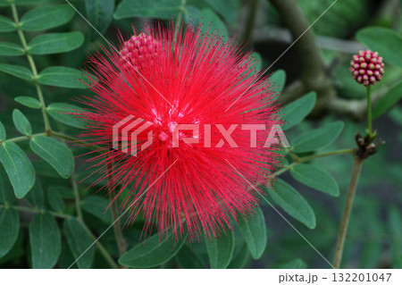 オオベニゴウカン 化粧パフに似た真っ赤な半球形の花