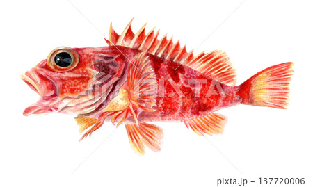 ユメカサゴの手描き水彩画