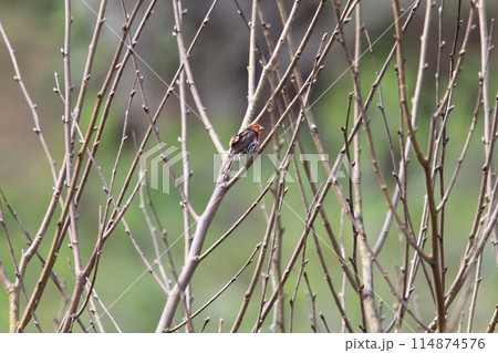 冬から春に身近な公園や雑木林で出会えるワインレッドと白の色鮮やかな美しい小鳥、ベニマシコ