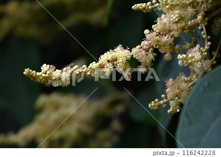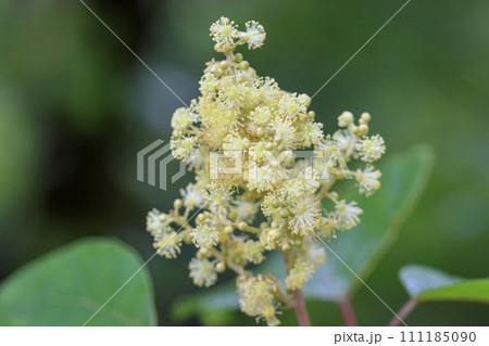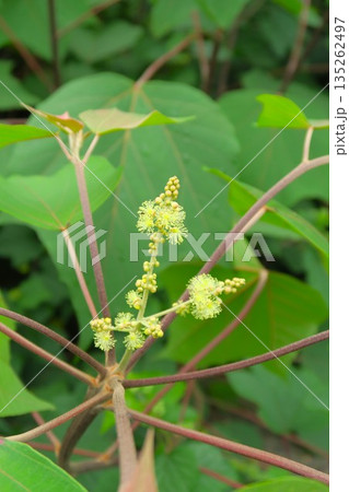 クリーム色のアカメガシワの花(夏、七月)