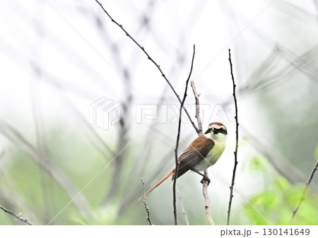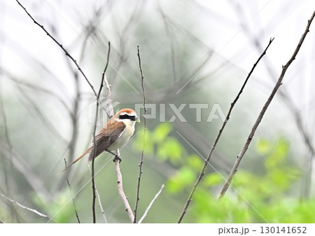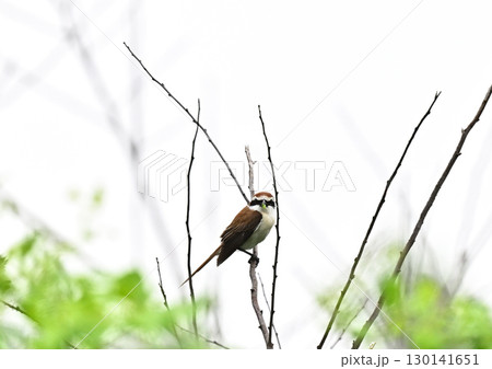 シマアカモズの雄|春の枝にとまる姿