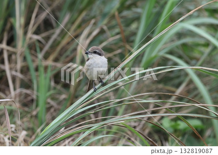 草に止まるシマアカモズ