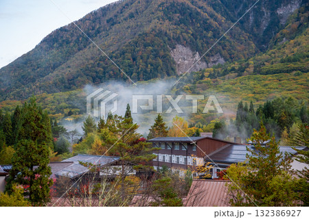 《奥飛騨温泉郷の秋》 湯けむりが立ちのぼる「平湯温泉」