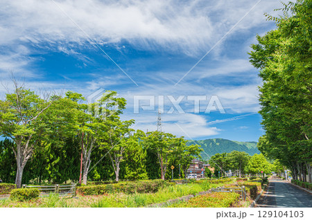 JR湖西線マキノ駅前通りの並木道 アクアパレス通り 滋賀県高島市マキノ町