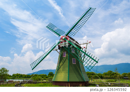 岐阜県海津市 紅葉とオランダ風の風車が美しい秋のアクアワールド水郷パークセンター