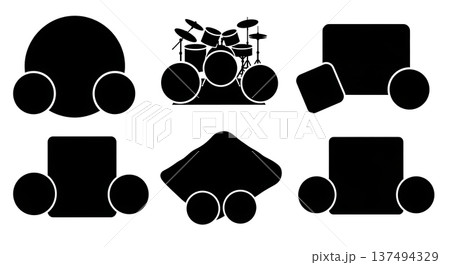 Black Solid Drum Rug Silhouettes Set of Six on White Background