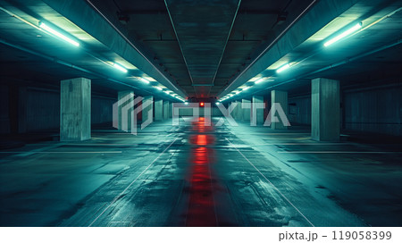 Spacious Modern Underground Car Parking Area With Concrete Structure, Bright Lighting. Generative AI