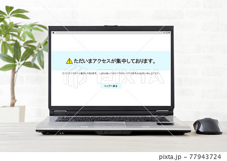 アクセス集中の画面が映し出されたパソコン