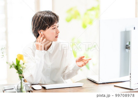 テレビ会議で音があまり聞こえない若い女性
