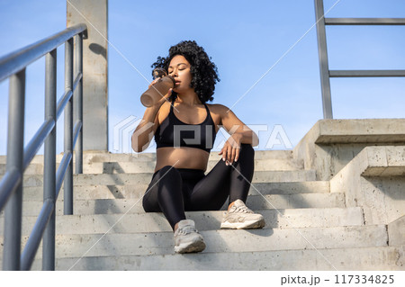 A woman stretches her body in the gym after an intense workout, a healthy muscle stretch after training.