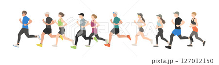 男女混合のランナーグループ(半袖・夏のジョギング)