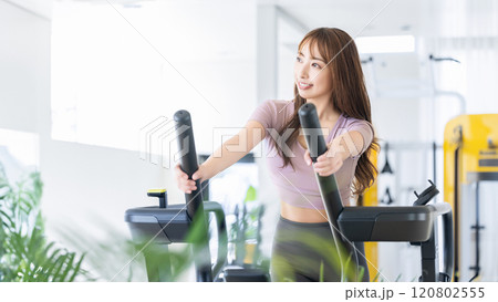 ランニングマシーンに乗る女性