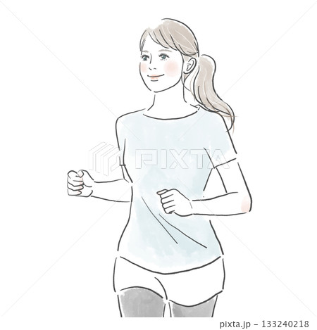 笑顔でジョギングをするポニーテールの若い女性