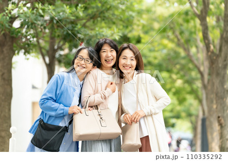 仲良しシニア女性 お出かけ