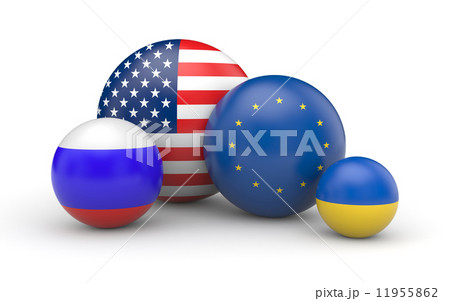 Russian aggression against Ukraine and Germany's indecisive policy concept. Flags on a dark