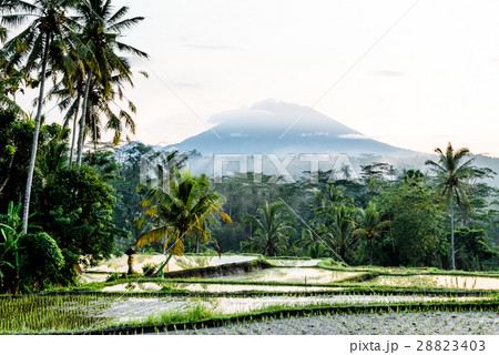 バリ島 水田 アグン山 夜明け
