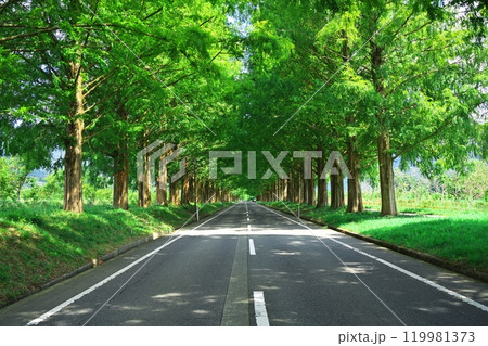 夏のメタセコイア並木道 高島市農業公園マキノピックランド