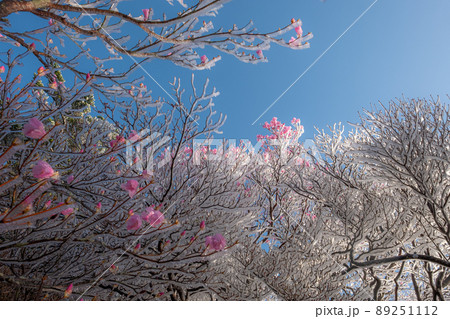 霧氷とアケボノツツジ(瓶ヶ森林道)