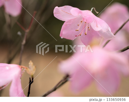 肌寒い3月に咲いたピンク色のアカヤシオの花