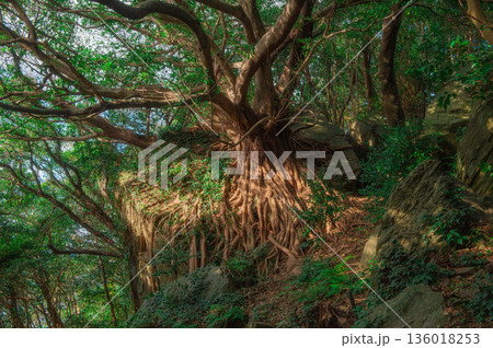 秋の佐多岬に自生するアコウの木 鹿児島県南大隅町