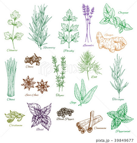 Spices, cooking herbs and seasonings sketch vector