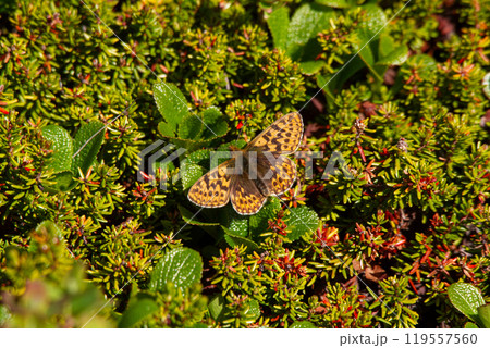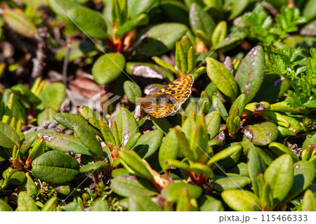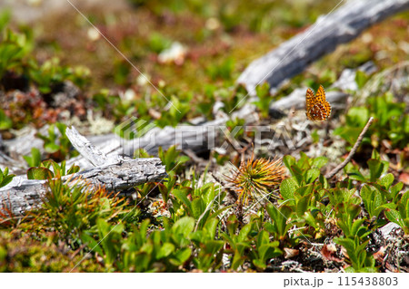 ガンコウランに止まるアサヒヒョウモン(北海道・大雪山)