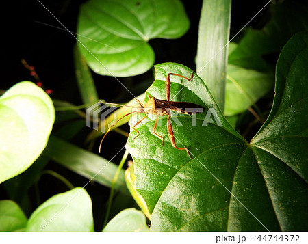 生き物 昆虫 アシブトヘリカメムシ、体長二十五ミリほどのメス。六月半ばの石垣島で