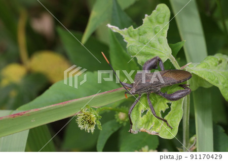 生き物 昆虫 アシブトヘリカメムシ、メスです。オスと異なりすっきりした脚をお持ちです