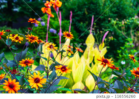 夏の花 ヘリオプシス とタイガー ベンガル カンナ