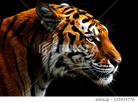 Royal surrealistic abstract tiger. Growling tiger watching his prey. The concept of the hunter.