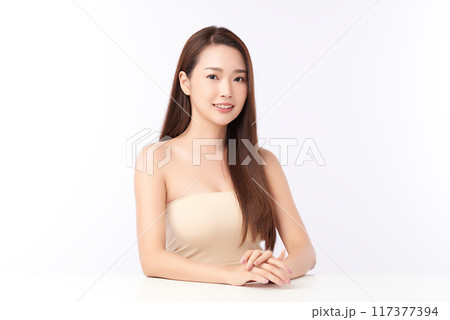 Beautiful young asian woman with clean fresh skin on white background, Face care, Facial treatment, Cosmetology, beauty and spa, Asian women portrait.