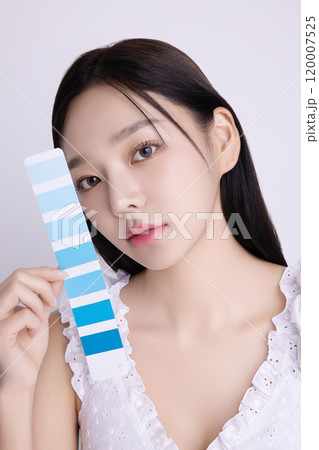 Beautiful young asian woman with clean fresh skin on beige background, Face care, Facial treatment, Cosmetology, beauty and spa, Asian women portrait.
