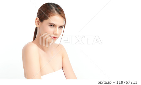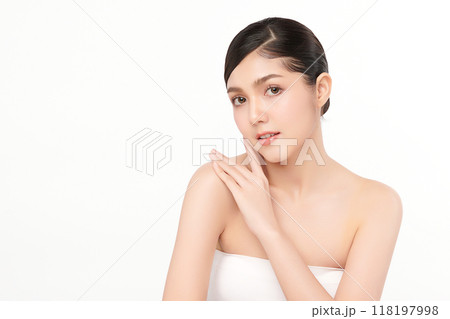 Beautiful young asian woman with clean fresh skin on white background, Face care, Facial treatment, Cosmetology, beauty and spa, Asian women portrait.