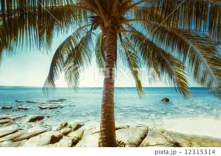 Beautiful sunny day at tropical beach with palm tree