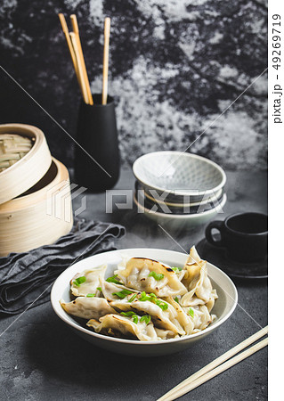 Asian dumplings in bowl