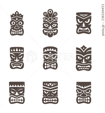 Tribal tiki masks. Polynesian style vector design for tattoos, festival art, tropical decor and cultural illustrations