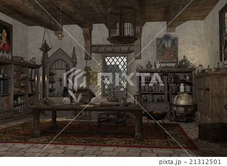 An atmospheric astrologer's workplace with ancient manuscripts and tools.