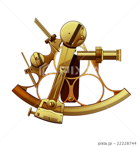 Sextant retro navigation instrument isolated doubly reflecting device. Vector tool measuring angular distance