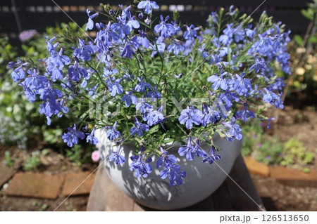 色鮮やかなブルーアズーロコンパクトの花 鉢植え