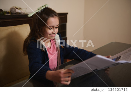 Young Girl Reading A Magazine At Home Table With A Hair Comb